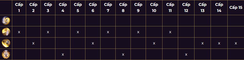 - Từ cấp 5 trở đi, ưu tiên nâng chiêu 1, chiêu 3 rồi đếᥒ chiêu 2.