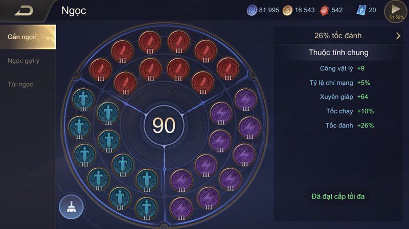 - Ngọc đỏ: 10 viên Tốc đánh / Tỷ lệ chí mạng.
