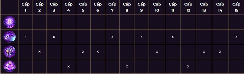- Nâng lần lս͗ợt chiêu 1 –> Chiêu 2 –> Chiêu 1 –> Chiêu 3.