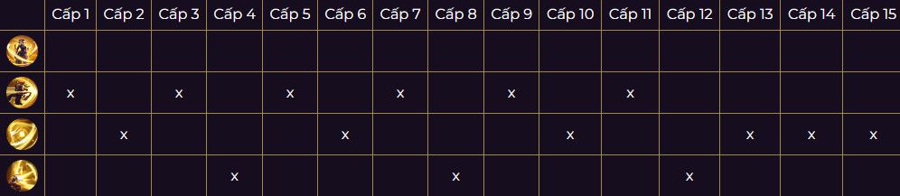 - Từ cấp 5 trở đi ưu tiên chiêu 1 –> Chiêu 3 rồi đến chiêu 2.